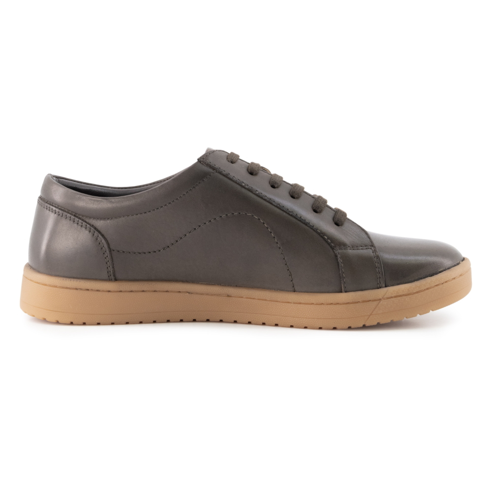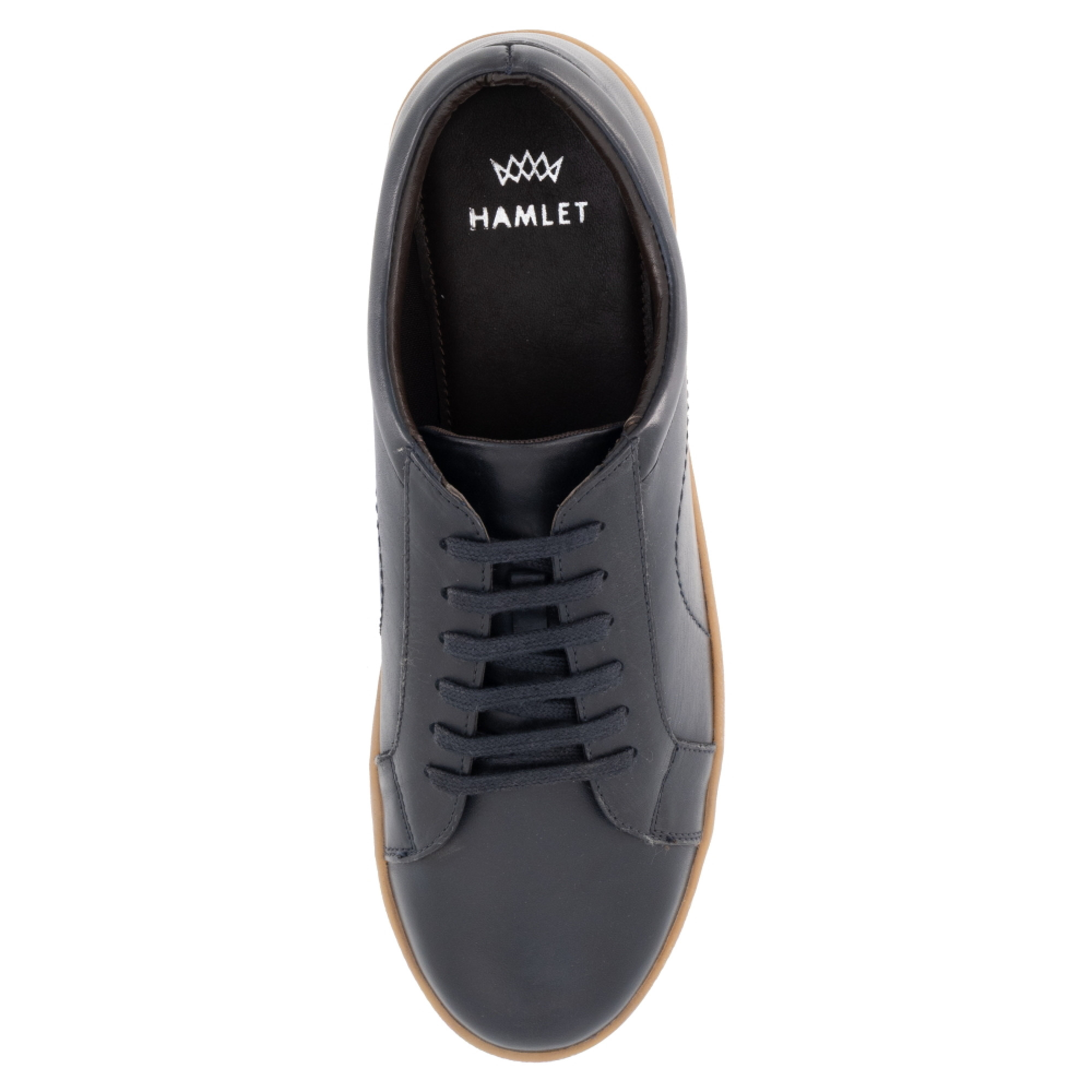 Der Sneaker als Klassiker: HM TIM - ein Sneaker in Glattleder Dunkelblau, Braun und Olive.